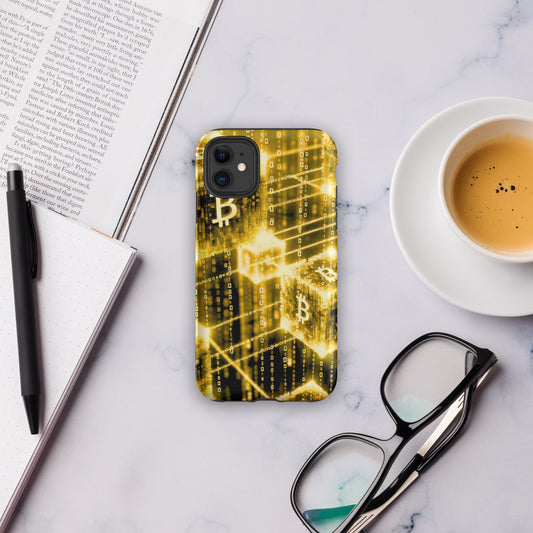 Funda iPhone Dura Diseño Bitcoin Blockchain Oro Digital - Carcasa Crypto Premium